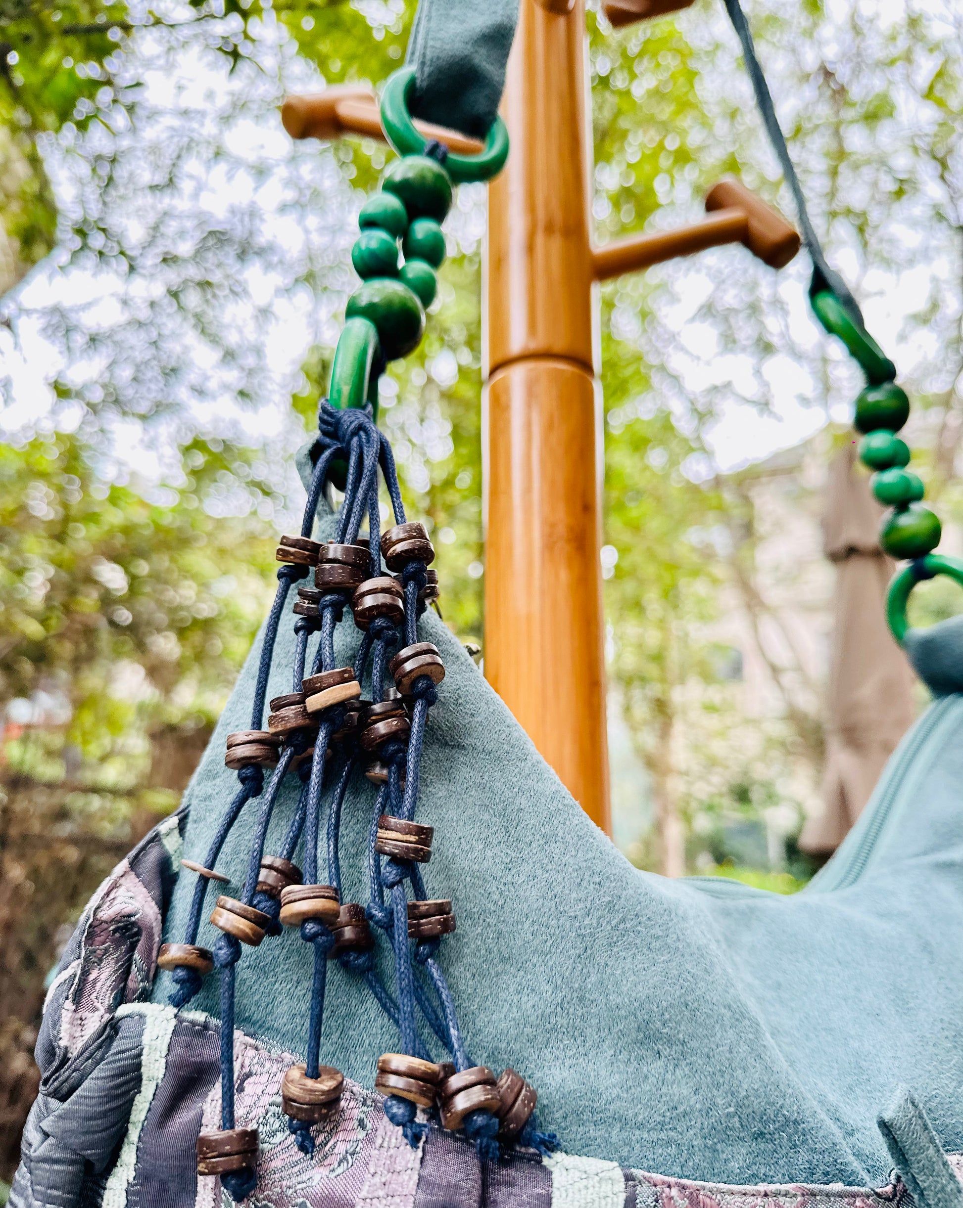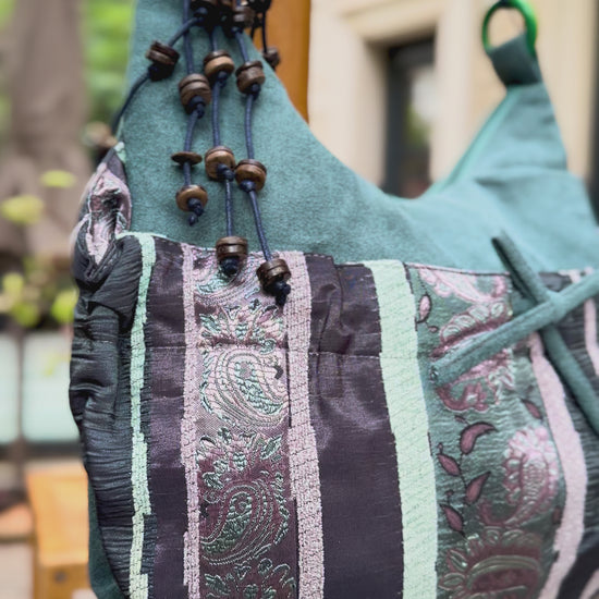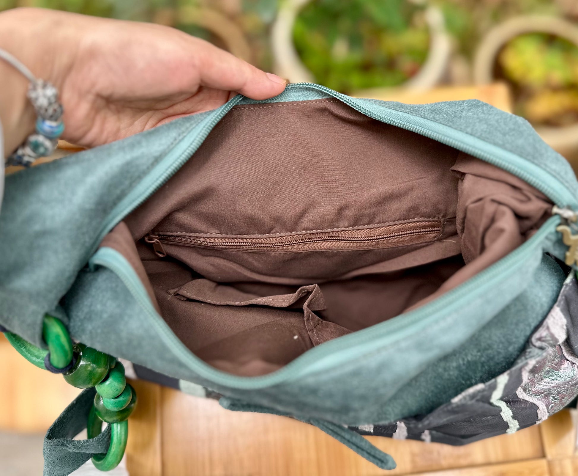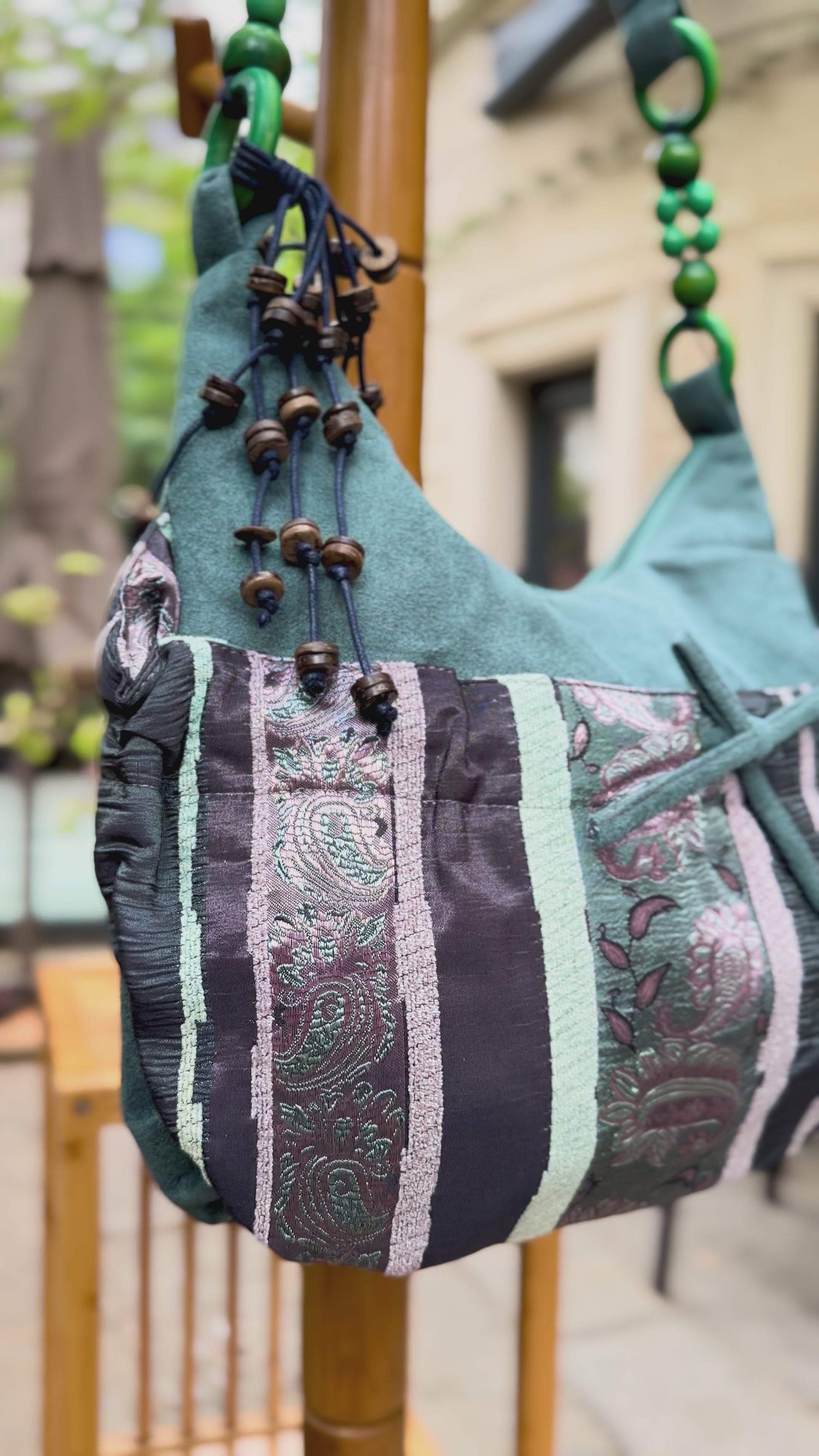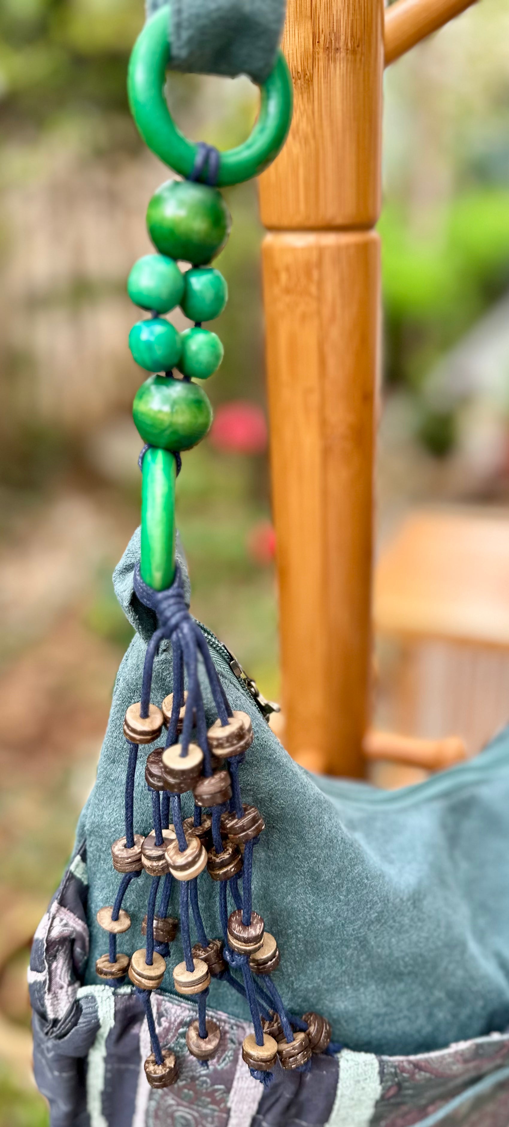 Boho Linen Handbag with Zipper Closure, Tote bag with Beads Charms on the Strap, Shoulder Bag for Women, Crossbody Bag