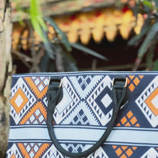 Handmade Natural Plant Dyed Cotton Briefcase with Octagonal Flower Pattern, Unique Pattern Handbag, Zipper Handle Bag for MacBook 13"