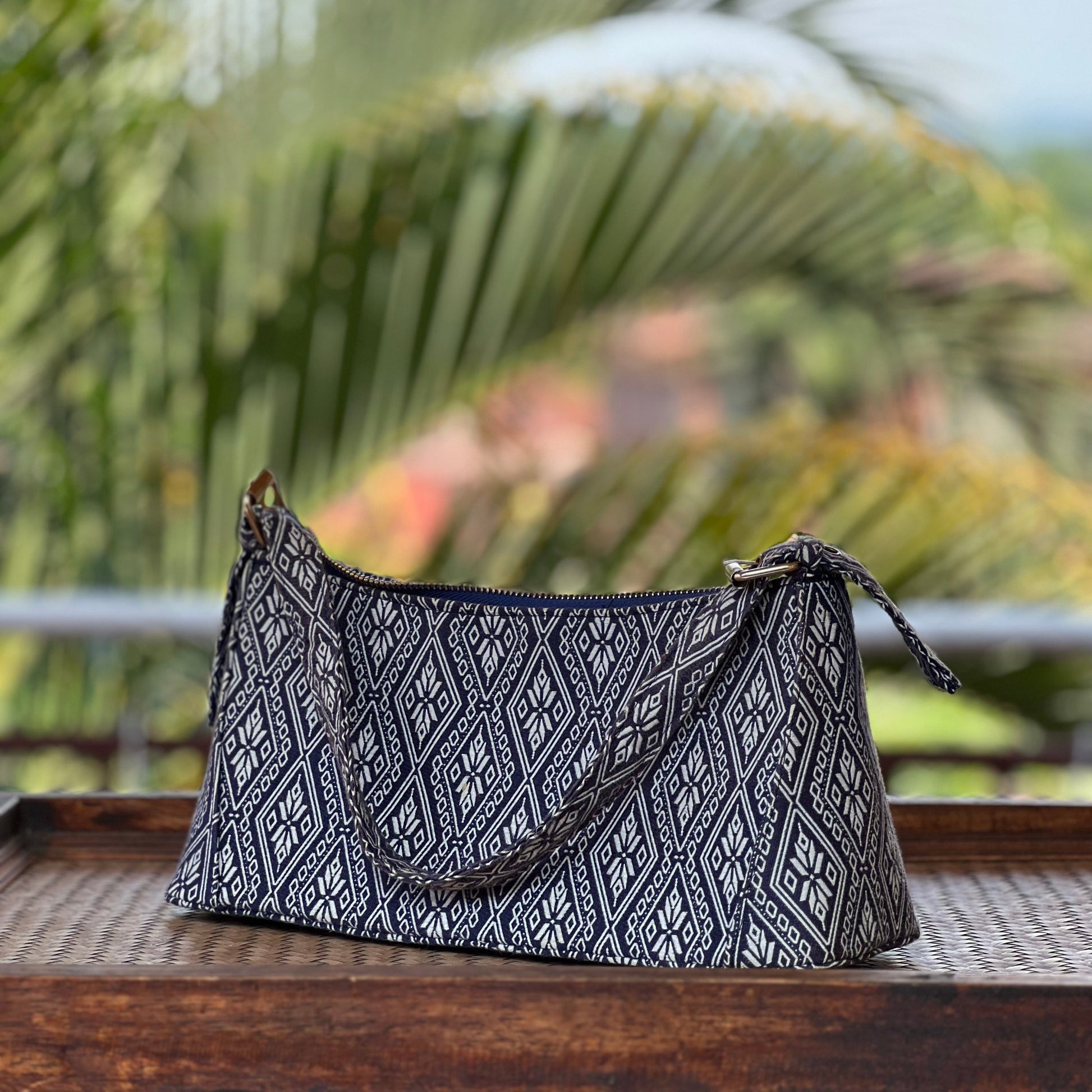 Handmade Natural Plant Dyed Cotton Underarm Bag with Octagonal Flower Pattern, Unique Pattern Shoulder Bag for Women, Blue, Gift for Her