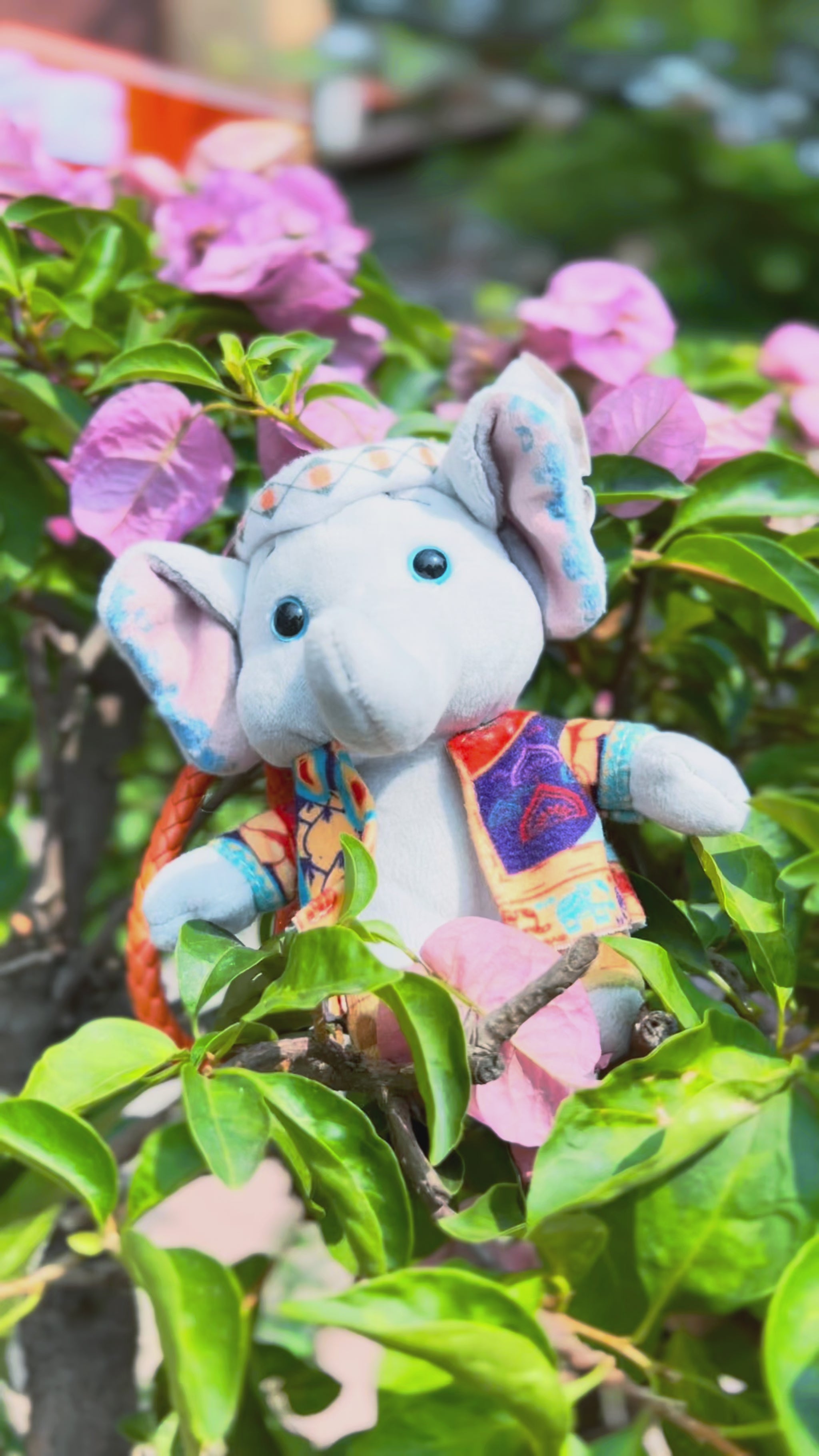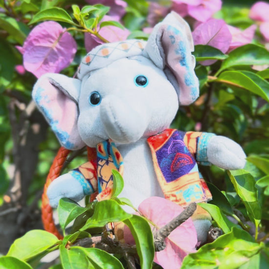 Handmade Royal Elephant Plushie Keychain with Ethnic Characteristics, Unique Stuffed Elephant Doll Keychain with Strap
