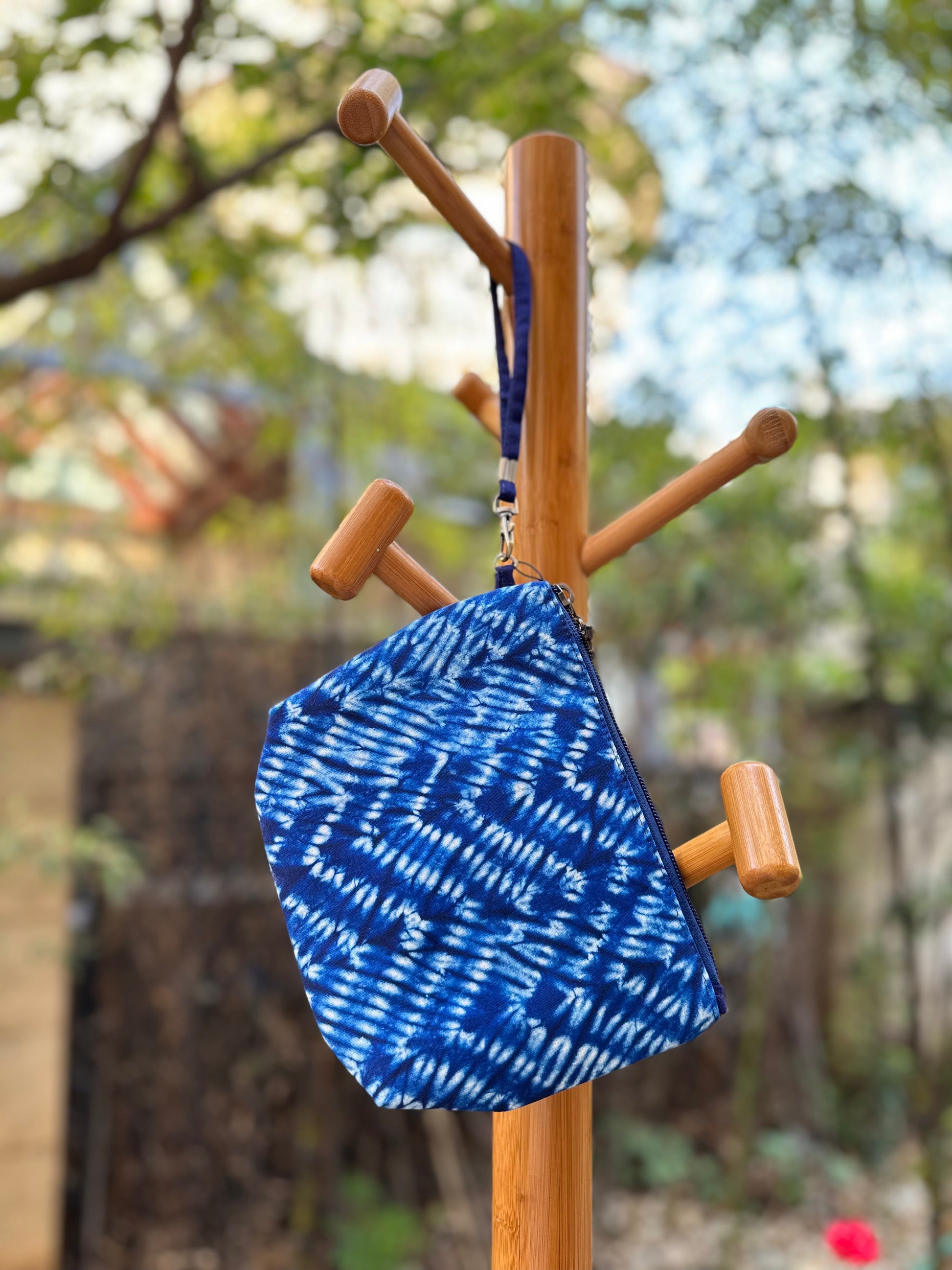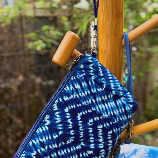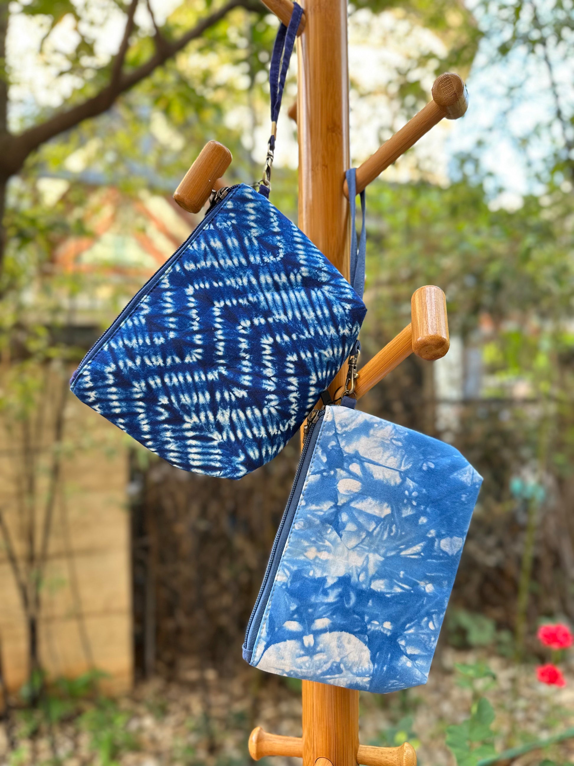 Tie Dye Linen Cosmetic Bag with Zipper Closure, Handbag with Strap