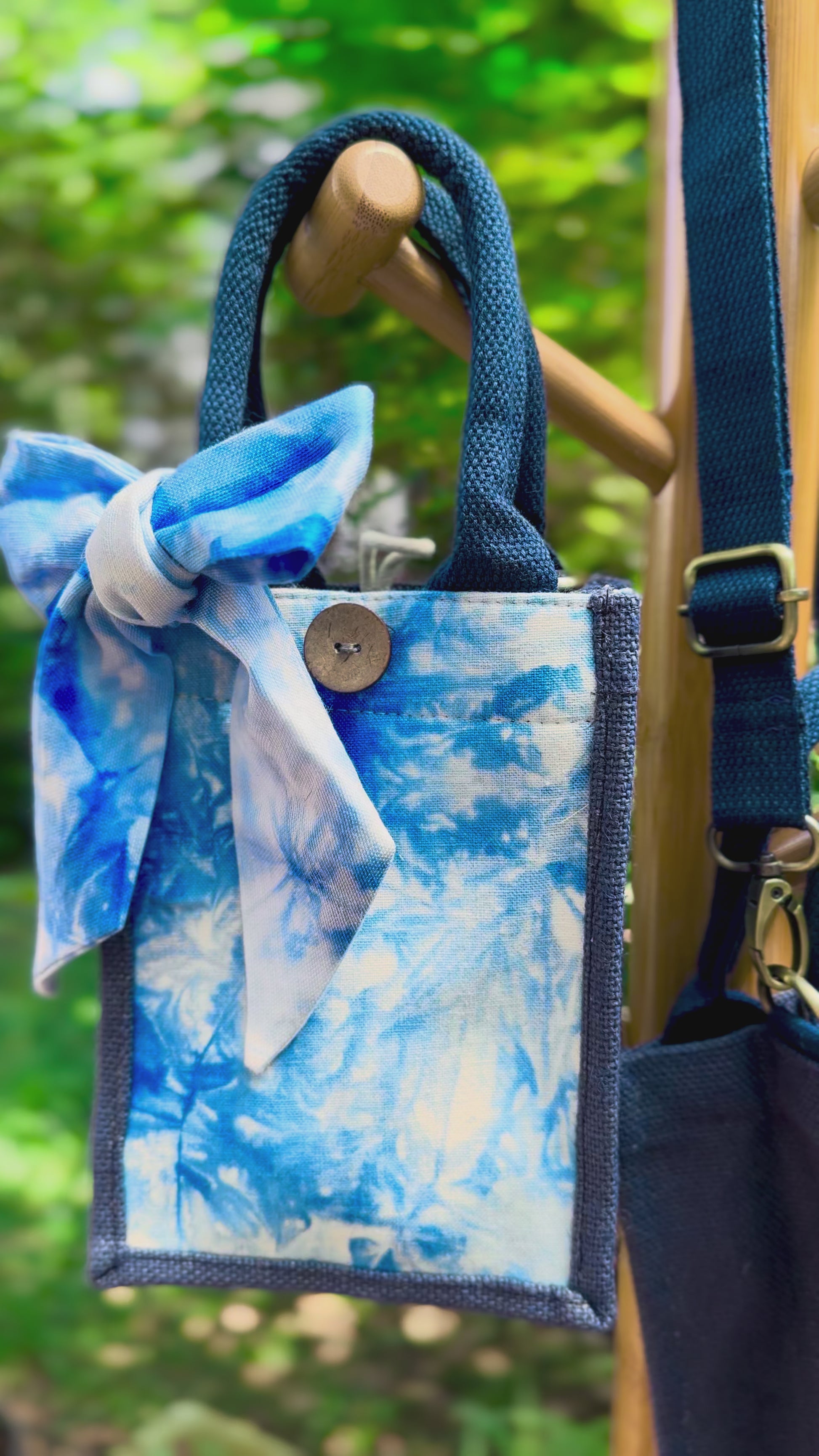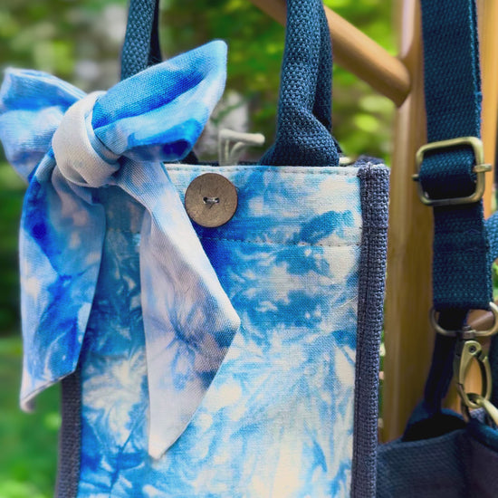 unique tie dye pattern on each piece, handmade top handle & crossbody linen handbag