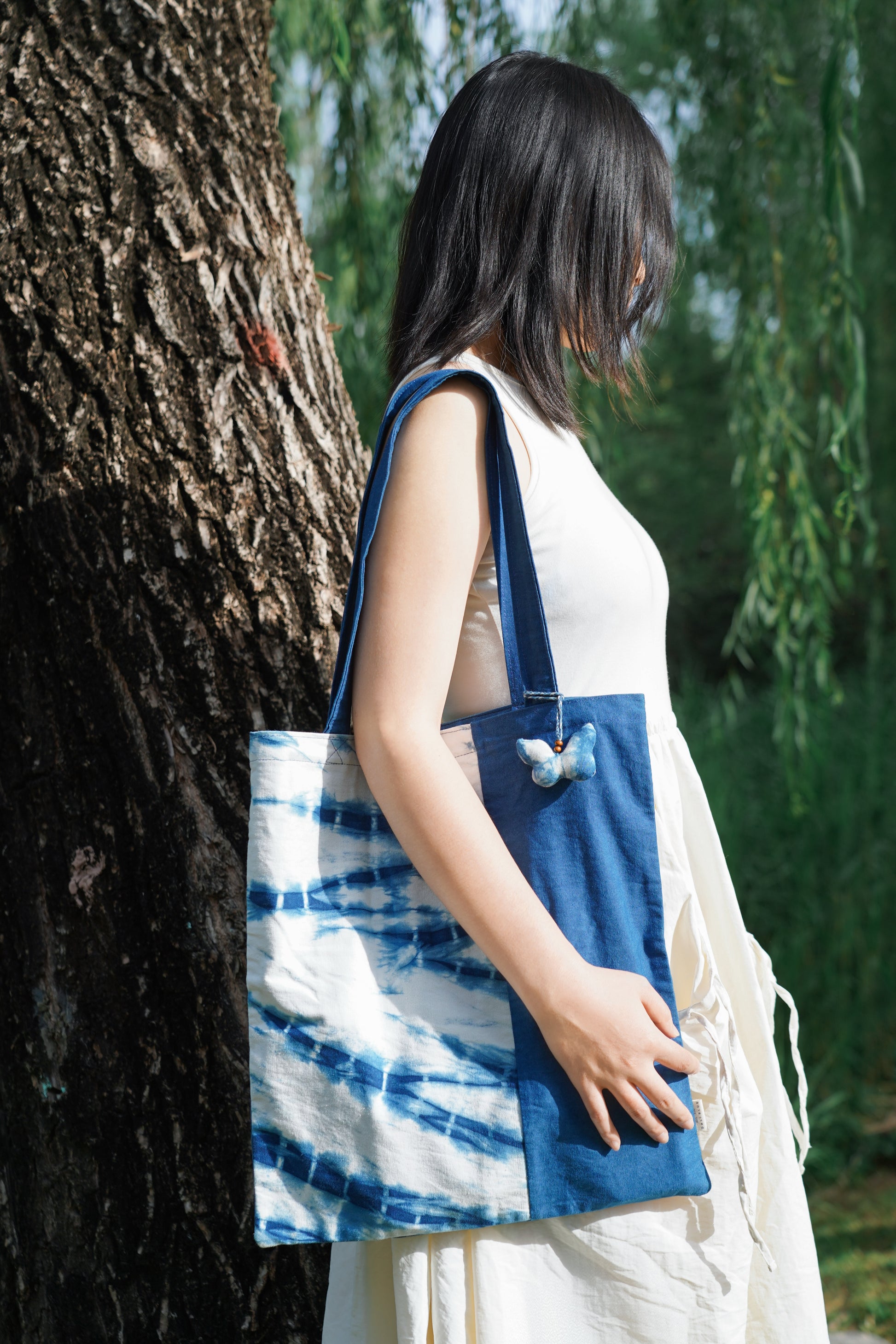 Tie Dye Shoulder Bag with Zipper Closure, Handbag with Natural Plant Tie Dye Pattern